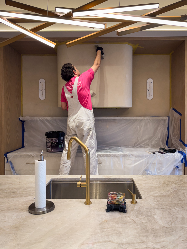 At Chromatist Painters, we specialize in wrapping custom range hood structures in a high-performance, seamless microcement skin. Whether you are aiming for a “Brutalist” concrete look or a soft, matte mineral finish, our hand-troweled microcement is engineered to withstand the heat and demands of a professional kitchen.